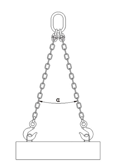 1、使用多肢链条索具起吊时,链条夹角一般应不超过90度,最大不得超过120度。