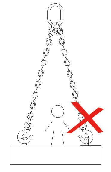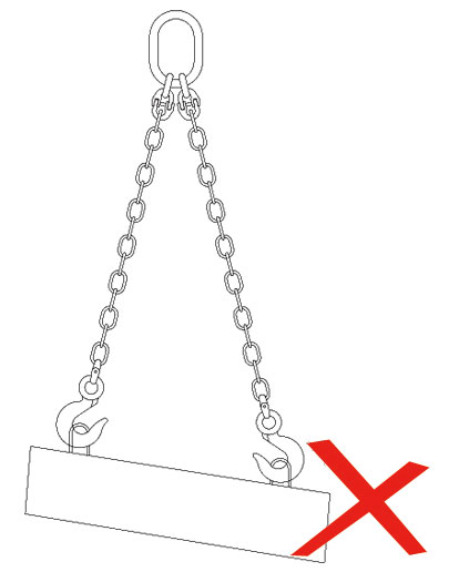 5、使用链条索具时,索具各肢长短应保持一致,使各肢均匀受力,保证重物始终处于稳定,平衡状态,防止提升时滑动或倾斜,禁止有冲击载荷。