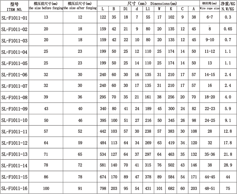 1、接头采用碳钢模锻而成,压合钢丝绳处采用机械加工,尺寸精度高,可放心与钢丝绳配合使用。