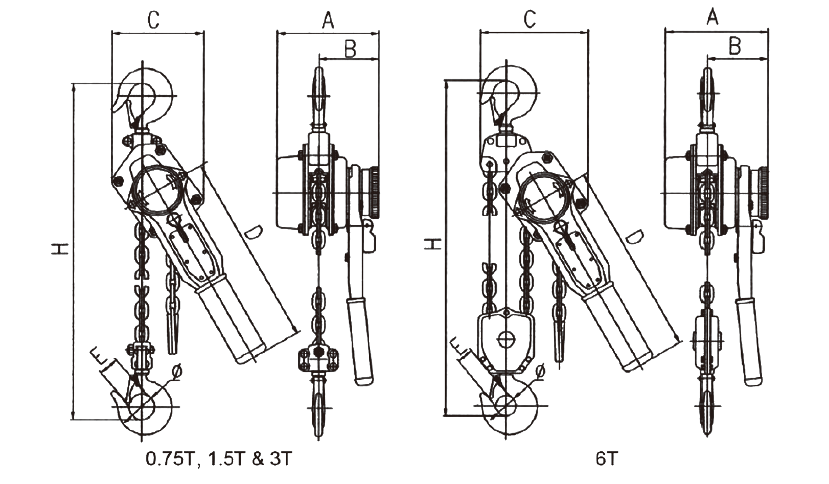 特点: 1、高强度G80起重链条。 2、平滑的起重链条倒链机构。 3、优质齿轮钢锻造,高精度加工齿轮...